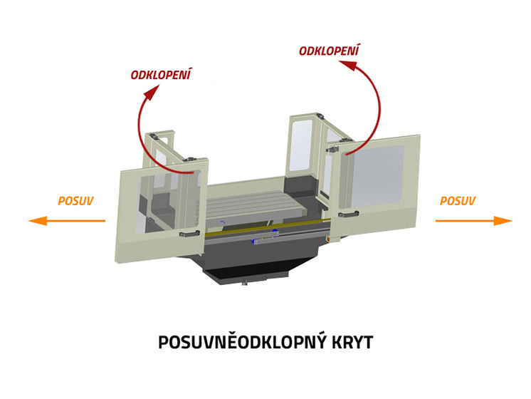 Na evropské trhy je tento stroj dodáván v provedení, které splňuje veškeré platné předpisy „CE“ včetně dokonale zakrytovaného pracovního prostoru. Na výběr jsou dvě možnosti jak kabinu zakrytovat. Možností standardní je zakrytování se sklopnými předními dvoukřídlými dveřmi a bočnicemi prosklené kabiny. Možností druhou je kabina v posuvně odklopném provedení předních dvoukřídlých dveří. Pochopitelně v obou případech jsou dveře jištěny bezpečnostním zámkem