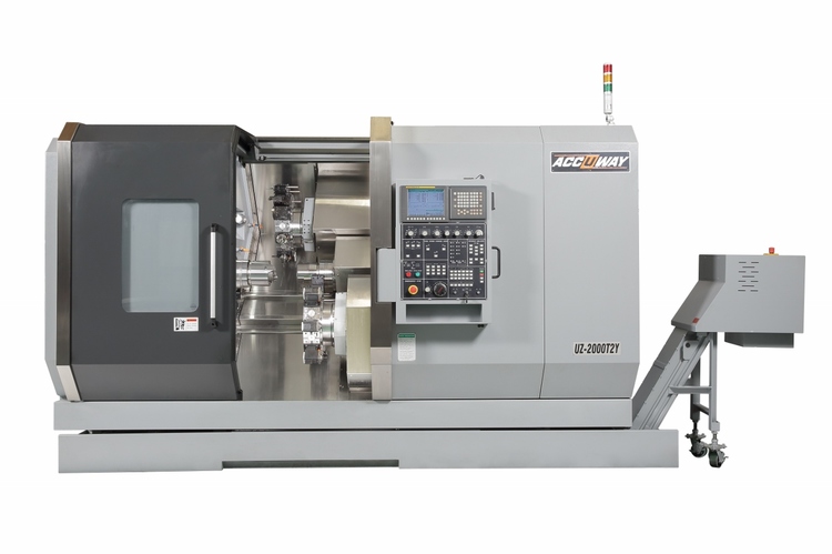 Jakousi pomyslnou „třešničkou“ na dortu představují soustruhy řady UZ – stroje se dvěma a více hlavami. Technickou vyspělost každého výrobce soustruhů se šikmým ložem dokládají právě takové stroje, protože v sobě snoubí poslední pokrok ve stavbě strojů a výrobce, který je chce konstrukčně zpracovat a vyrábět, již musí „být někdo“ ve svém oboru Bezvýznamní výrobci, kterých je „přehršel“ takové stroje v nabídce pochopitelně nemají…. Aby výrobce techniku těchto strojů zvládl, musí být vybaven technickým a personálním zázemím na opravdu vysoké úrovni. Firma ACCUWAY mezi úzkou skupinu takto vybavených strojů rozhodně patří!!!.