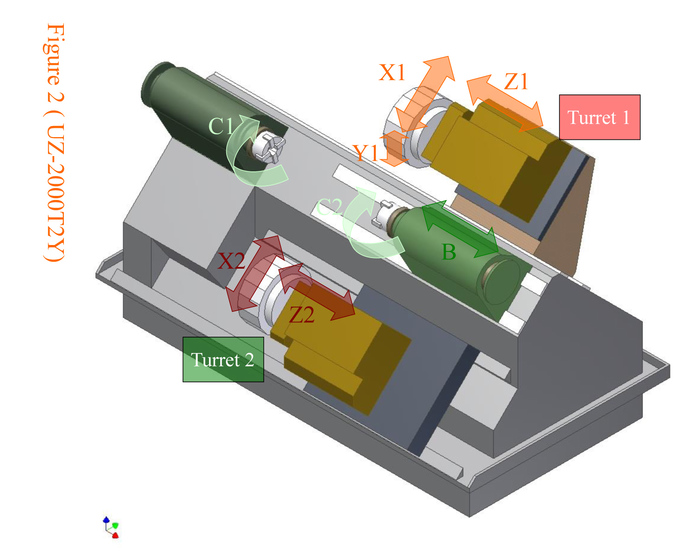 Výrobce pojal řadu UZ jako velkou stavebnici a její jednotlivé možné varianty zahrnul do schematických obrázků. K dispozici jsou stroje se dvěma hlavami umístěnými buď nahoře nad osou vřetena, anebo střídavě – jedna hlava nad osou a druhá pod osou. V obou případech jde různě kombinovat vybavení hlav osou „Y“. K dispozici je také provedení se třemi hlavami s možností individuální výbavy osou „Y“. Ve všech případech jsou obě vřetena poháněna lineárními motory, které představují v současné době špičkovou alternativu pro pohon vřeten. Má-li někdo technologickou potřebu takových strojů, je nutno podrobně jednat a zvolit tu správnou alternativu pro zcela konkrétní technologii použití stroje. Stroj lze doplnit podavačem tyčí a tím získat autonomní jednotku, která může pracovat bez zásahu obsluhy celou směnu. Lze též řešit automatizaci odebírání obrobků nebo zakládání polotovarů pomocí manipulačního robota nebo zvolit jiné automatizační řešení.