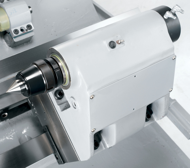 Obrázek zachycuje nástrojovou hlavu klasickou typu BOT (někdy se jí říká i domečková) pro statické nástroje a koník s hydraulicky vysouvatelnou pinolou a hrotem